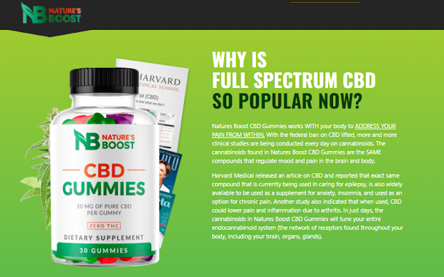 Nature's Boost CBD Gummies are a natural supplement that contains cannabidiol (CBD) extracted from hemp plants. These gummies are formulated to provide a convenient and tasty way to enjoy the potential benefits of CBD.